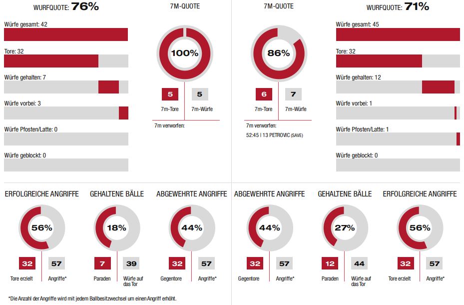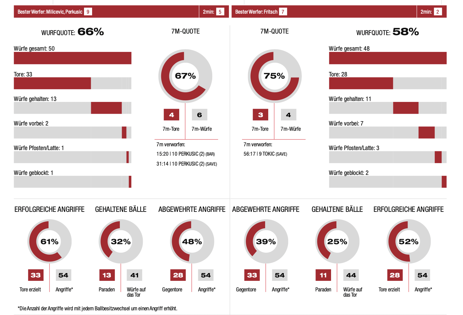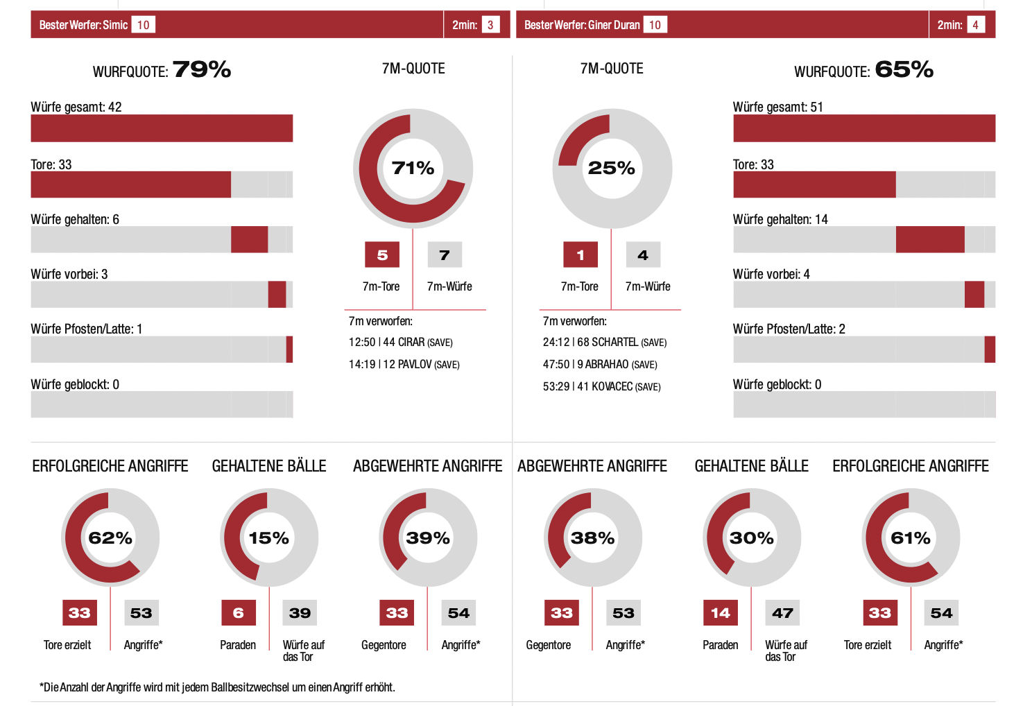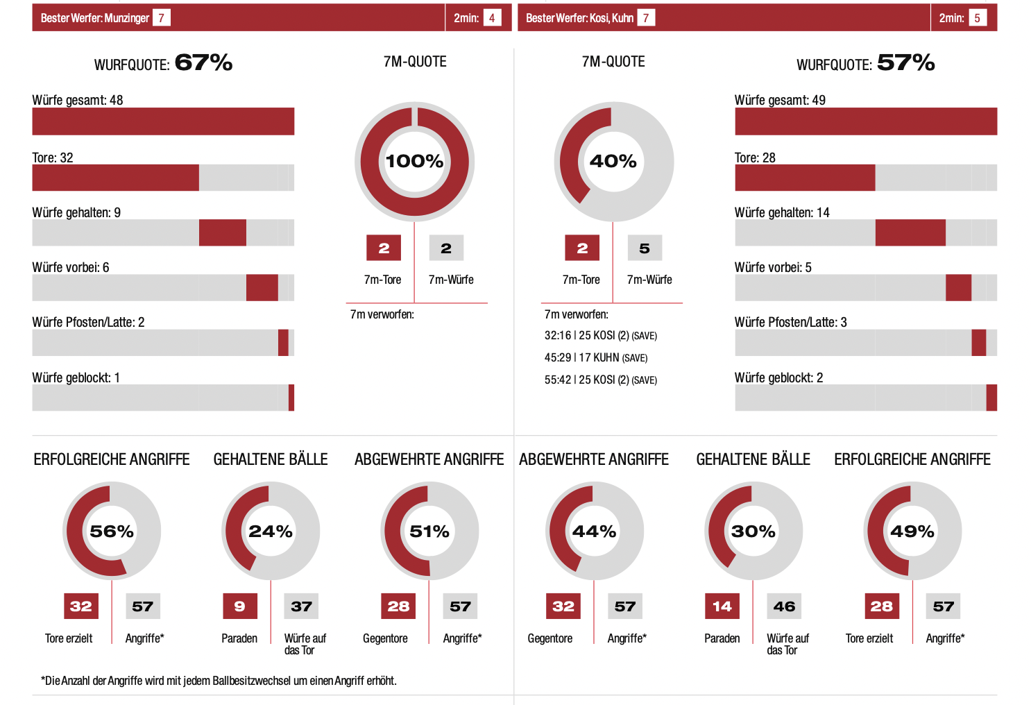 Werfer Bregenz Handball: Mindaugas Dumcius (10), Louis Mönch (4), Tommaso Romei (4), Srdjan Predragovic (4), Dian Ramic (3), Florian Steurer-Wieser (2), Lukas Ulmer (1), Claudio Svecak (1)